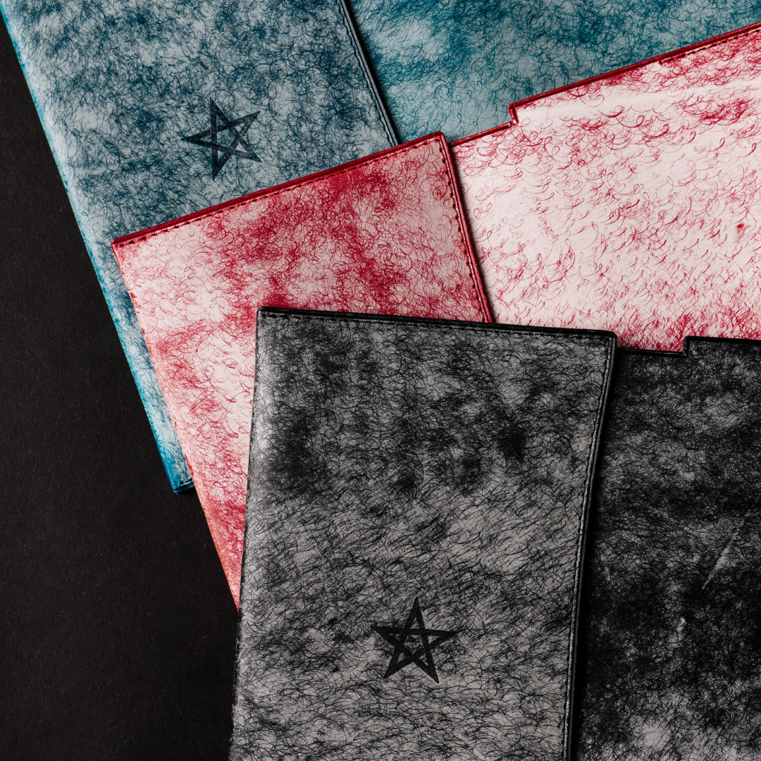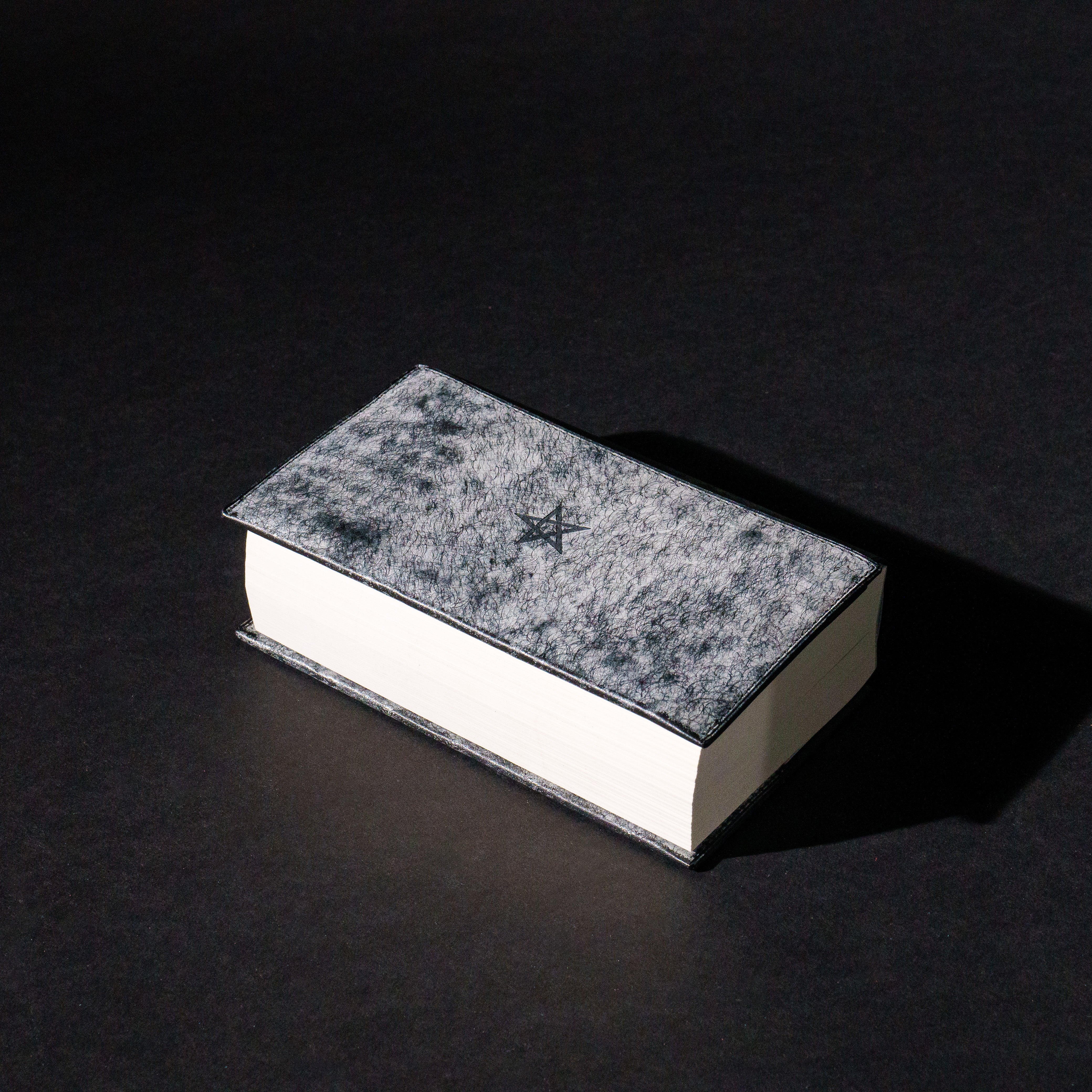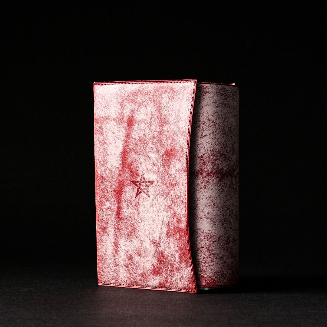 京極氏のデビュー作品『姑獲鳥の夏』(講談社)より登場する「晴明桔梗」。今回のブックカバーでは「晴明桔梗」をカバーの表面中央に刻印。京極氏の作品を持つ、その手元から京極氏が展開する作品の世界へと導きます。