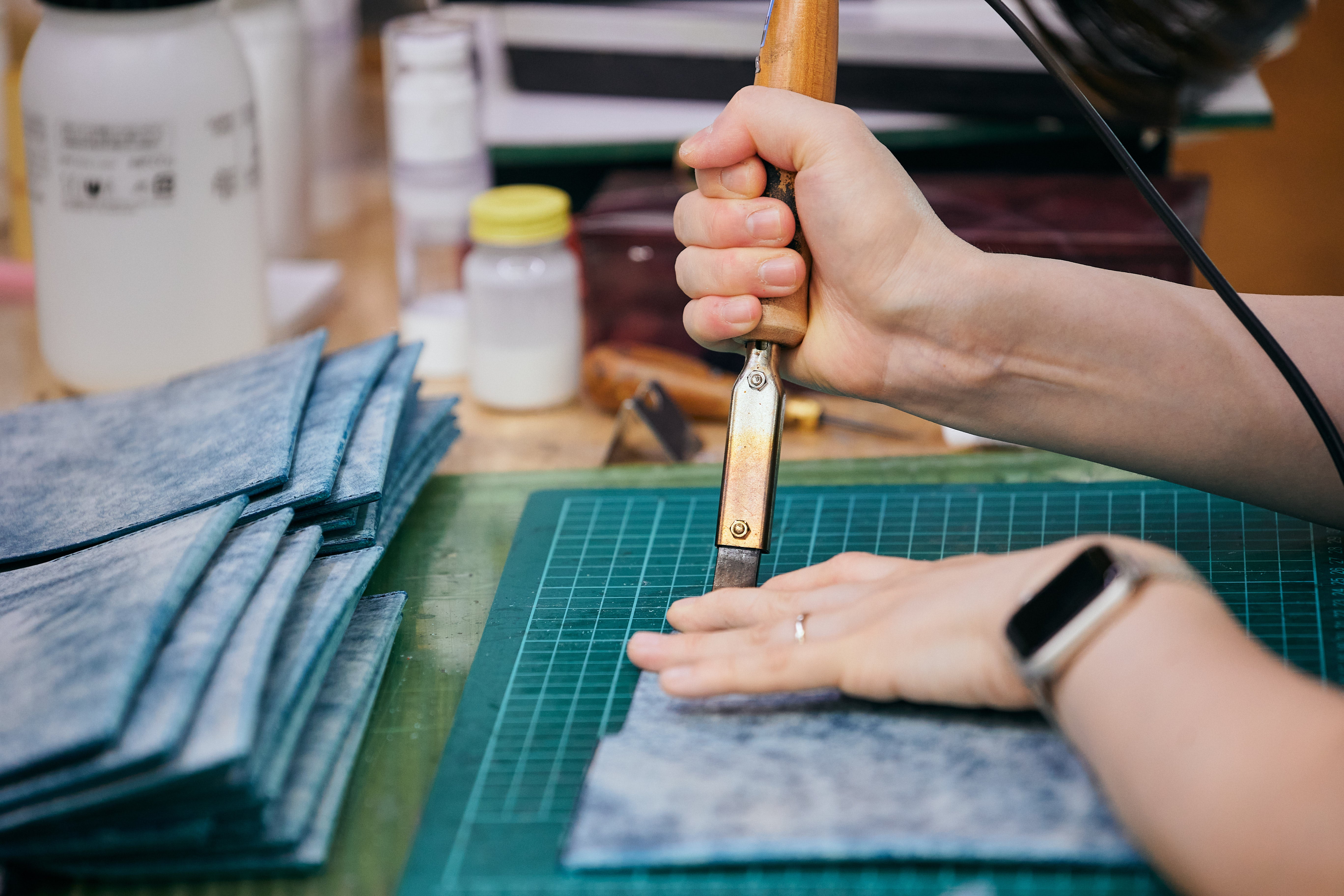 和紙のような手触りと使うほどに艶やかになり、手に馴染んでいく、その美しい経年変化で世界的に高い人気を誇るプエブロレザー。スクラッチ加工が施された唯一無二の表情がプエブロ独特の鮮明な染色を引き立てます。