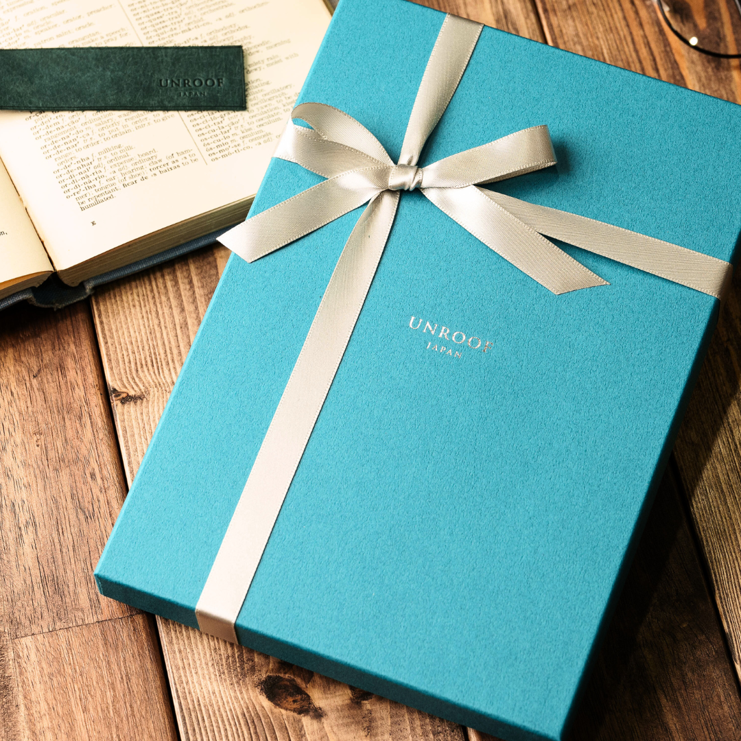 UNROOFオリジナルのギフトボックスに、リボンをかけてラッピングいたします。