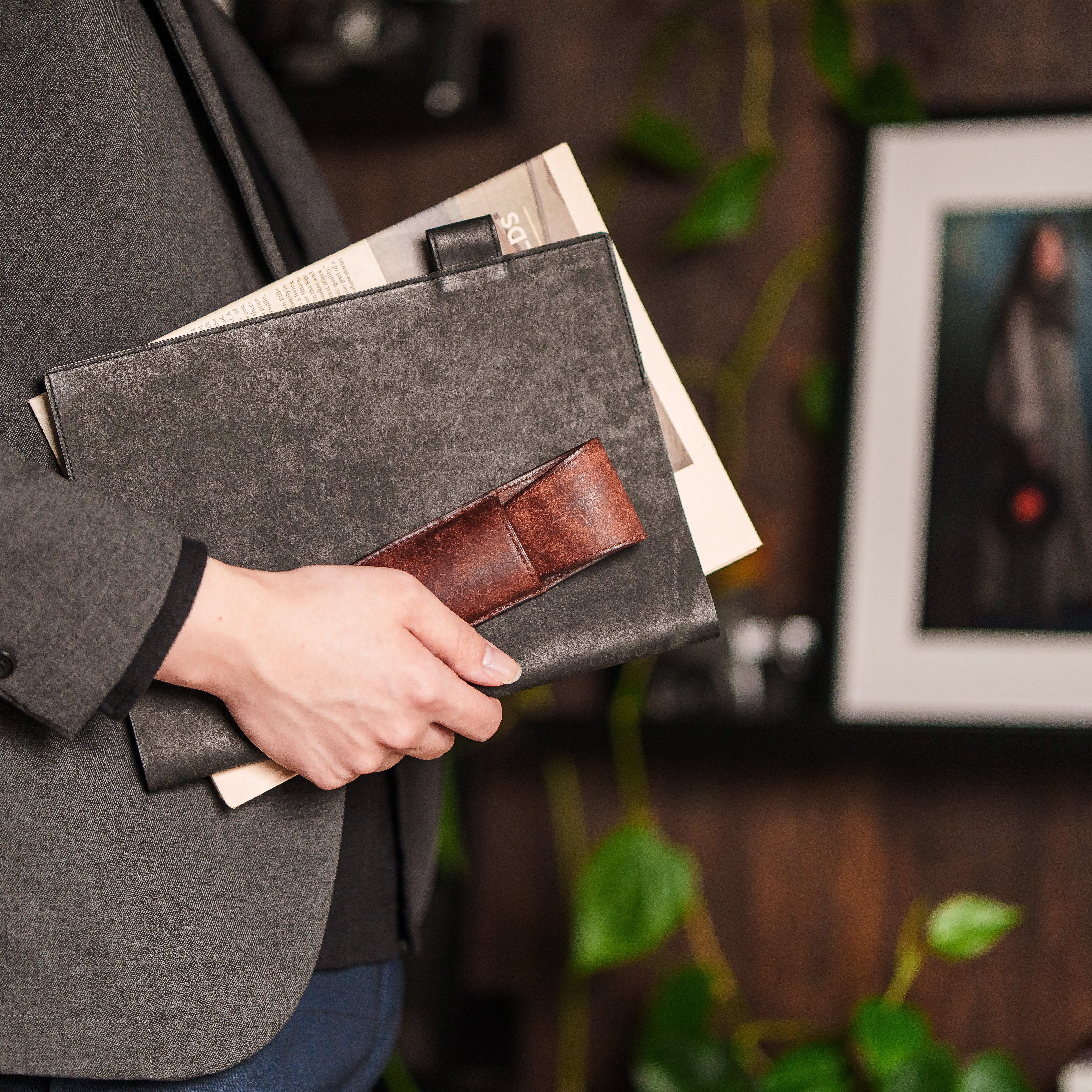 シンプルな見た目は商談や出張などのビジネスシーンにもぴったり。本革で仕立てているため、使うたびに艶やかさが増し、手に馴染んでいきます。