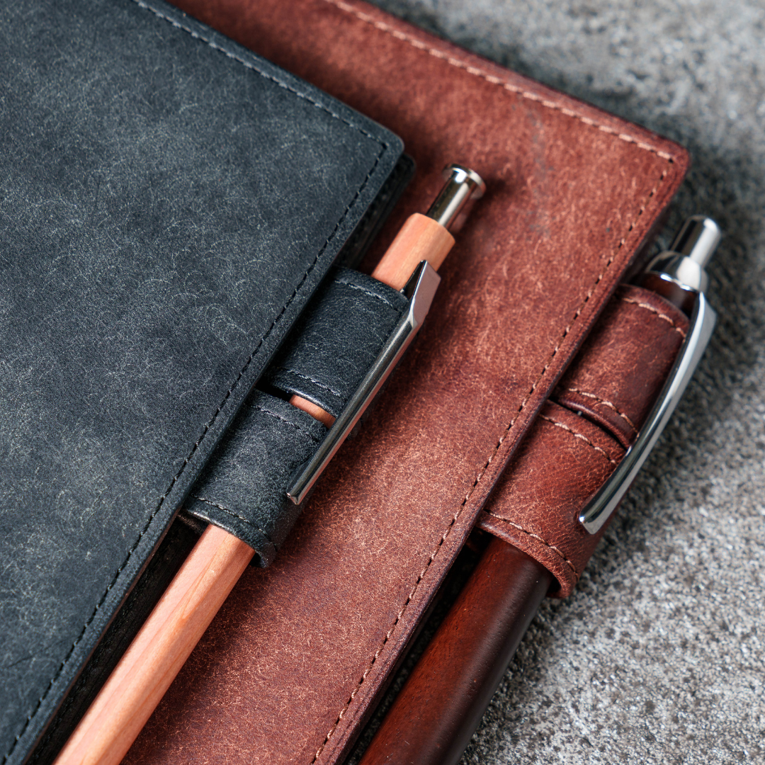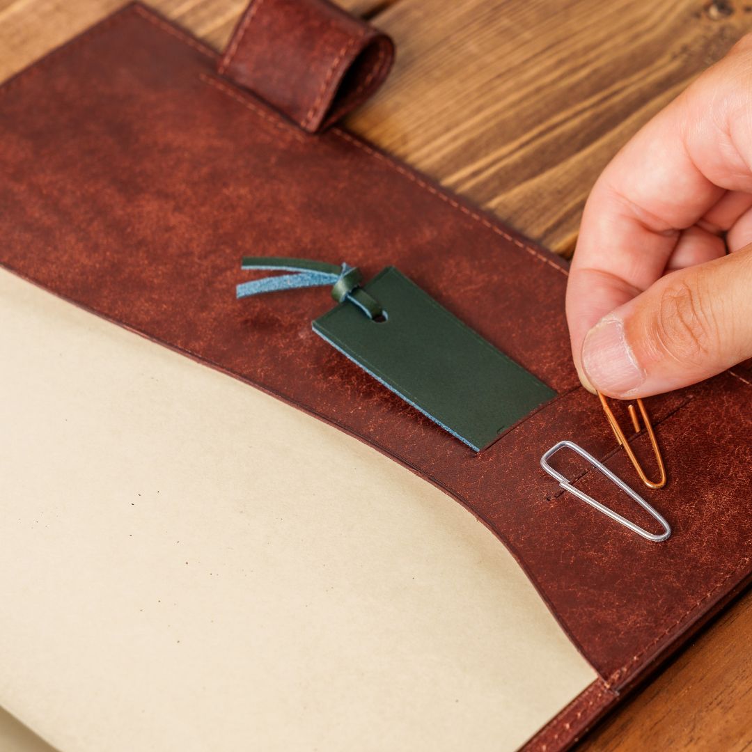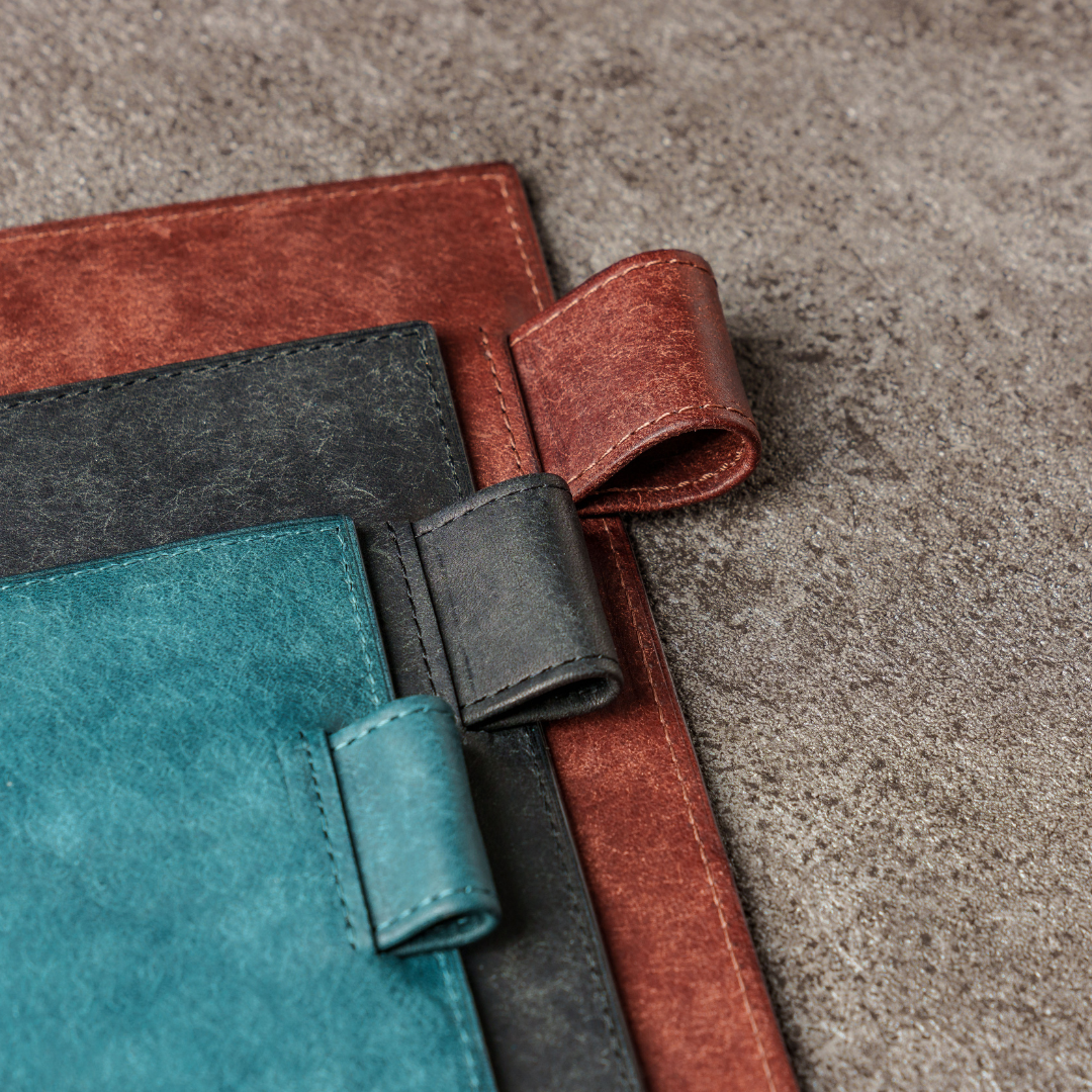 A6サイズ/A5サイズの2サイズを展開。手帳やノートの厚みは1.5cmまで対応しているため、ノートを2冊収納して使うことも可能です。